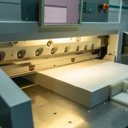 Equipo de alta precisión para el corte recto y limpio de grandes volúmenes de papel. Ideal para finalizar trabajos de impresión con exactitud y velocidad.