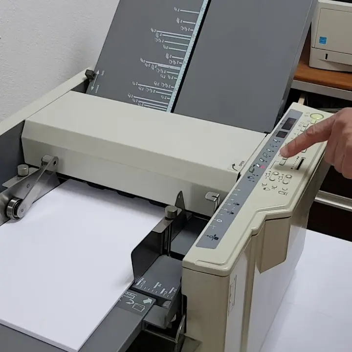 Equipo automático para doblar y marcar pliegues en papelería publicitaria, boletines, dípticos o folletos con terminación profesional.