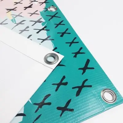 Incluye refuerzo perimetral y Ojetillos metálicos para colgar fácilmente. Resistente al sol y la lluvia, ideal para interiores y exteriores.